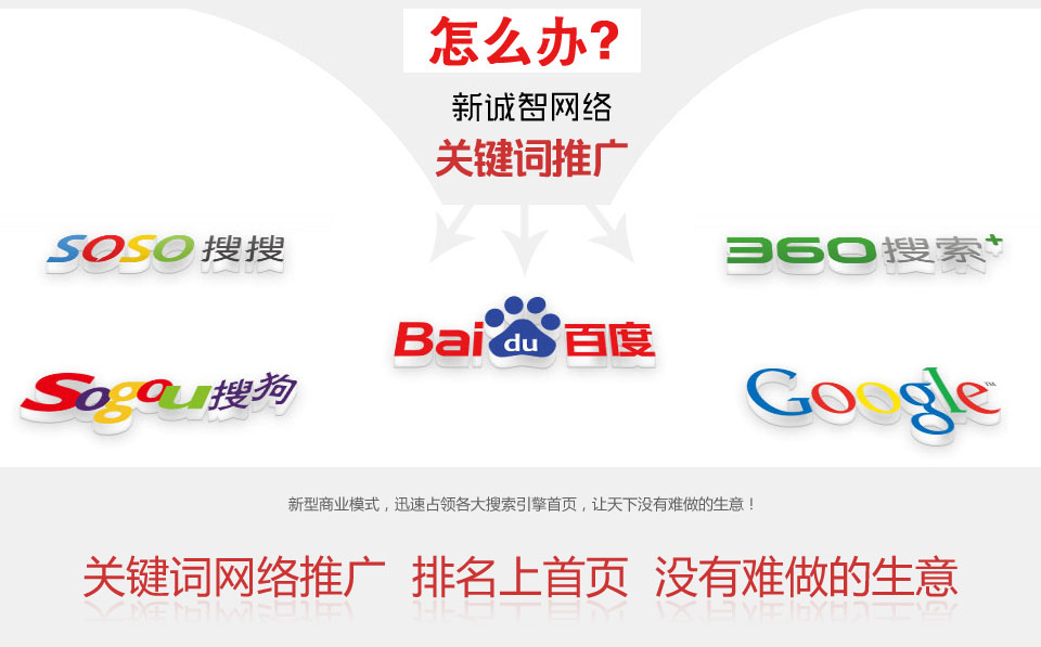 新誠智網絡關鍵詞推廣會覆蓋所有的主流搜索引擎,并取得搜索引擎首頁的排名優勢,